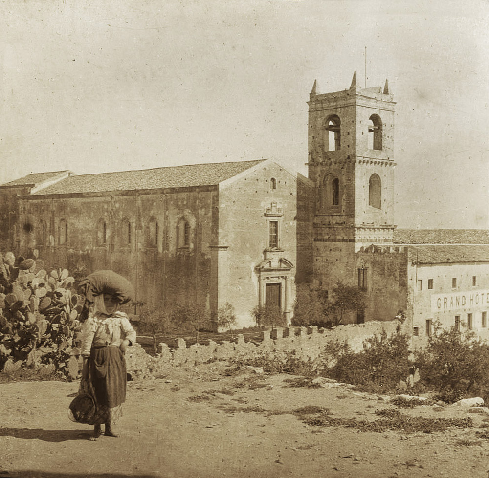 The travelers visited Messina, the port connecting Italy and Sicily, which only a few years later would be destroyed by an earthquake. They crossed the Strait of Messina—or the strait of Scylla and Charybdis sailed by Odysseus—by a technological wonder of their time, the train ferry. They walked in Pompeii and Agrigento and stayed in monasteries, which nowadays are operating as comfortable hotels. And they took pictures of everywhere they went. We are lucky to witness their trip, the Old World Train, the now destroyed cities and monuments, and the wild papyrus of Syracuse, through the beautiful pictures these travelers left behind.